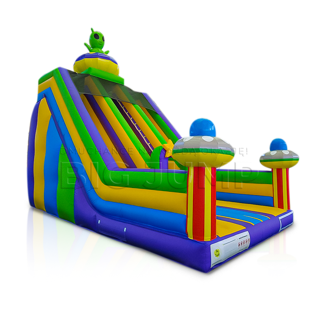 Dmuchana zjeżdżalnia podwójna Kosmita to idealne rozwiązanie dla każdej grupy odbiorców, na każdą imprezę plenerową. Bez względu na wiek, nasze zjeżdżalnie oferują radość zarówno dla maluchów, jak i starszych dzieci, dostosowując się do różnorodnych potrzeb rozrywki. Jest to najbardziej uniwersalny dmuchaniec.