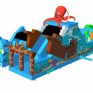 Kolorowy dmuchaniec dla dzieci, który zapewnia mnóstwo radości i bezpiecznej zabawy na świeżym powietrzu.